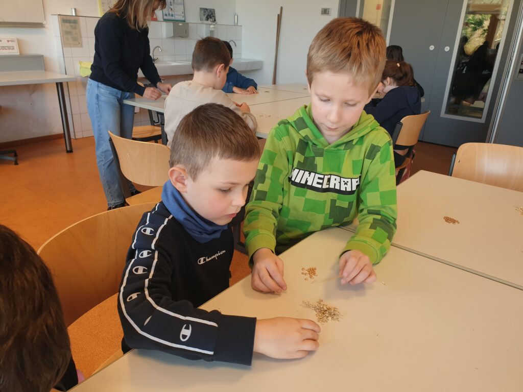 Der 2. Jahrgang war zu Besuch in der Grünen Schule im Romberpark. Erst machten wir aus Weizenkörnern Mehl, daraus einen Teig und zum Schluss gab es leckere kleine Brote. Wir haben viel gelernt und Spaß hat es auch gemacht.